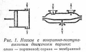 напорный трубопровод.По виду вытеснителя насосы подразделяют на поршневые и мембранные (рис. 1).