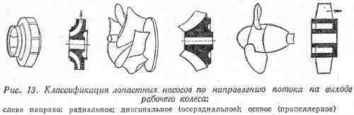колеса - на центробежные насосы радиального, диагонального типов и на осевые (рис. 13);
