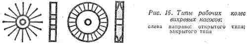 Вихревые насосы по форме рабочего колеса можно классифиицировать на открытые (звездообразные), закрытые (с периферийнообоковым каналом) и чисто вихревые (рис. 16), а по прохождению потока на одно- и многоступенчатые насосы.