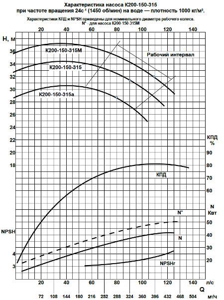 | К200-150-315 | 315 | 32 | 82 | 36,9 | 45 | АИР 200 L4 | 3,5 |