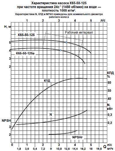 | К 65-50-125/4 | 1450 | 12,5 | 5 | 64 | 0,27 | 0,55 | АИР71А4 | 2 |