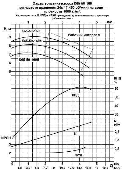 Характеристики консольных насосов К65-50-160, К65-50-125 на 1450 об/мин