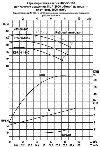 Характеристики консольных насосов К65-50-160, К65-50-125 на 2900 об/мин